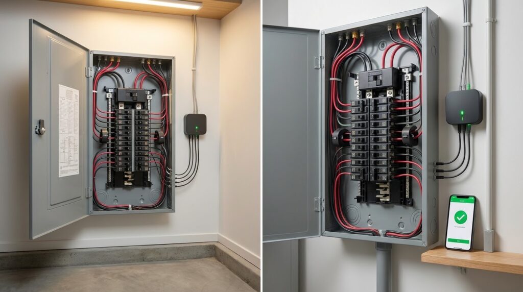 Are home energy monitors difficult to install? Most panel-installed monitors take 25–45 minutes to install. CT clamps snap around existing cables without cutting wires or interrupting power. The main requirement is comfort working inside an open electrical panel. If you’re not comfortable, a licensed electrician typically charges $75–$150 for the full installation.